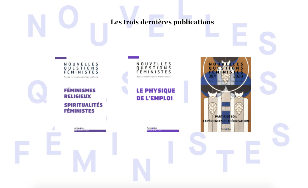 « Nouvelles Questions Féministes, revue francophone internationale, diffuse des articles scientifiques dans les disciplines des sciences humaines et sociales qui examinent les processus sociaux à l’origine des inégalités et des discriminations de genre. Elle vise à améliorer et à diffuser les connaissances dans le domaine des études sur le genre ou études féministes par l’animation du débat scientifique et la circulation des savoirs dans ce champ de recherche, notamment en traduisant des articles de langue étrangère et en accueillant des textes concernant toutes les aires géographiques. Elle publie des recherches empiriques comme des réflexions théoriques. Elle privilégie les travaux qui analysent les effets structurels des rapports sociaux de sexe dans tous les domaines. Elle s’intéresse à tous les sujets sans exclusive : travail, éducation, justice, famille, sexualité, santé, mouvements sociaux, médias… Elle accorde une large place aux recherches qui étudient comment divers systèmes de hiérarchisation sociale contribuent à produire des configurations particulières du système de genre et s’inscrit en cela dans le sillage des études sur l’imbrication des rapports sociaux. Elle s’adresse à celles et à ceux (pouvoirs publics, associations, étudiant·e·s…) qui souhaitent transformer ces rapports sociaux et trouver les moyens intellectuels de construire l’égalité.